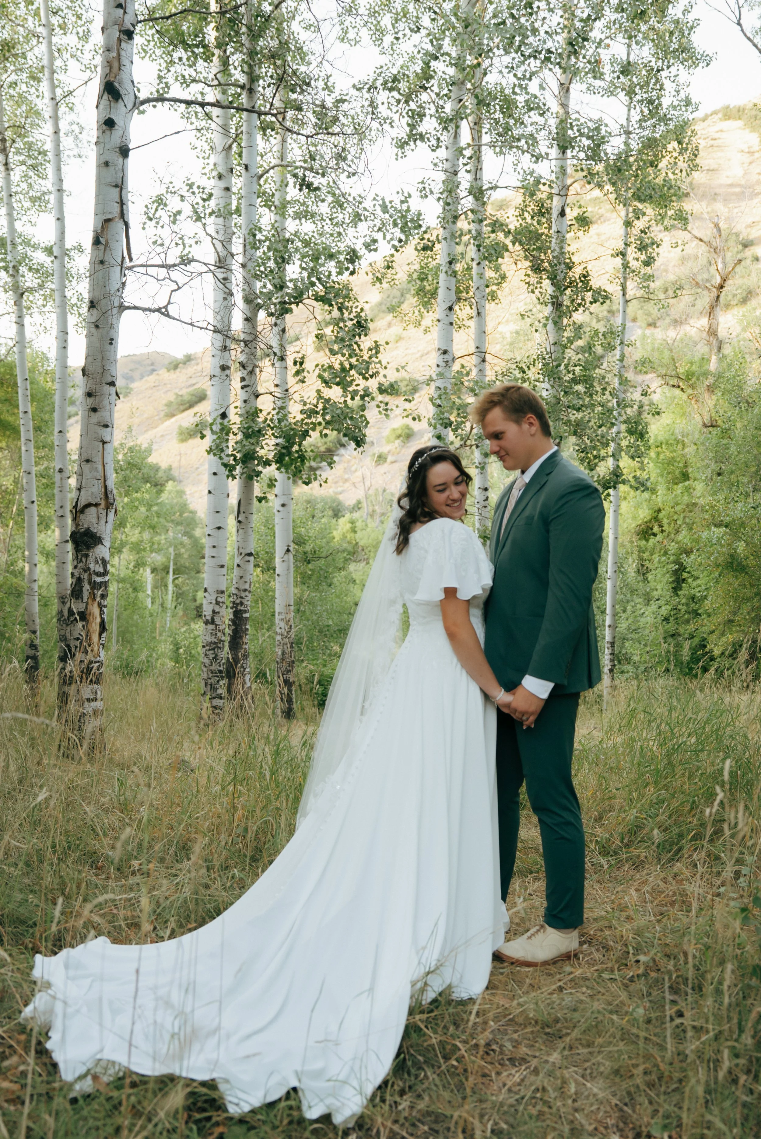 https://venicestudios.pixieset.com/lizandjasonfirstlooksneakpeeks/Tall green grassy field, foresty trees, and a great view of the mountains!